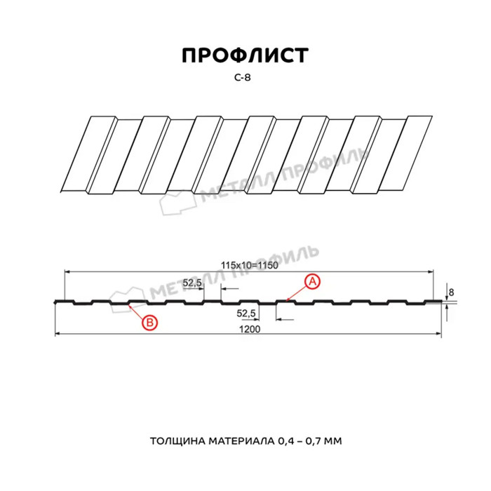 Профлист Металл Профиль С-8 0,45 Полиэстер RAL 7004 Серый | B